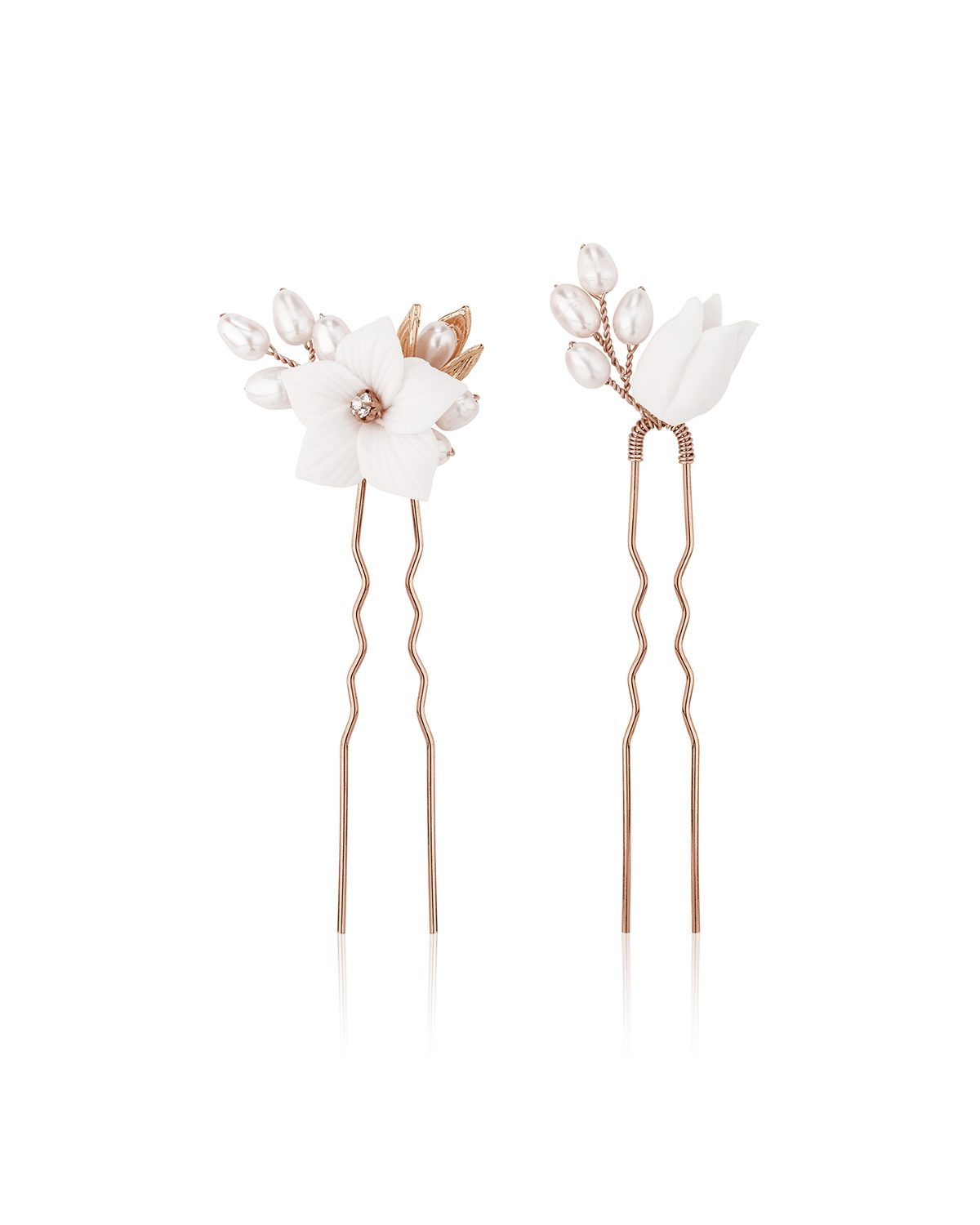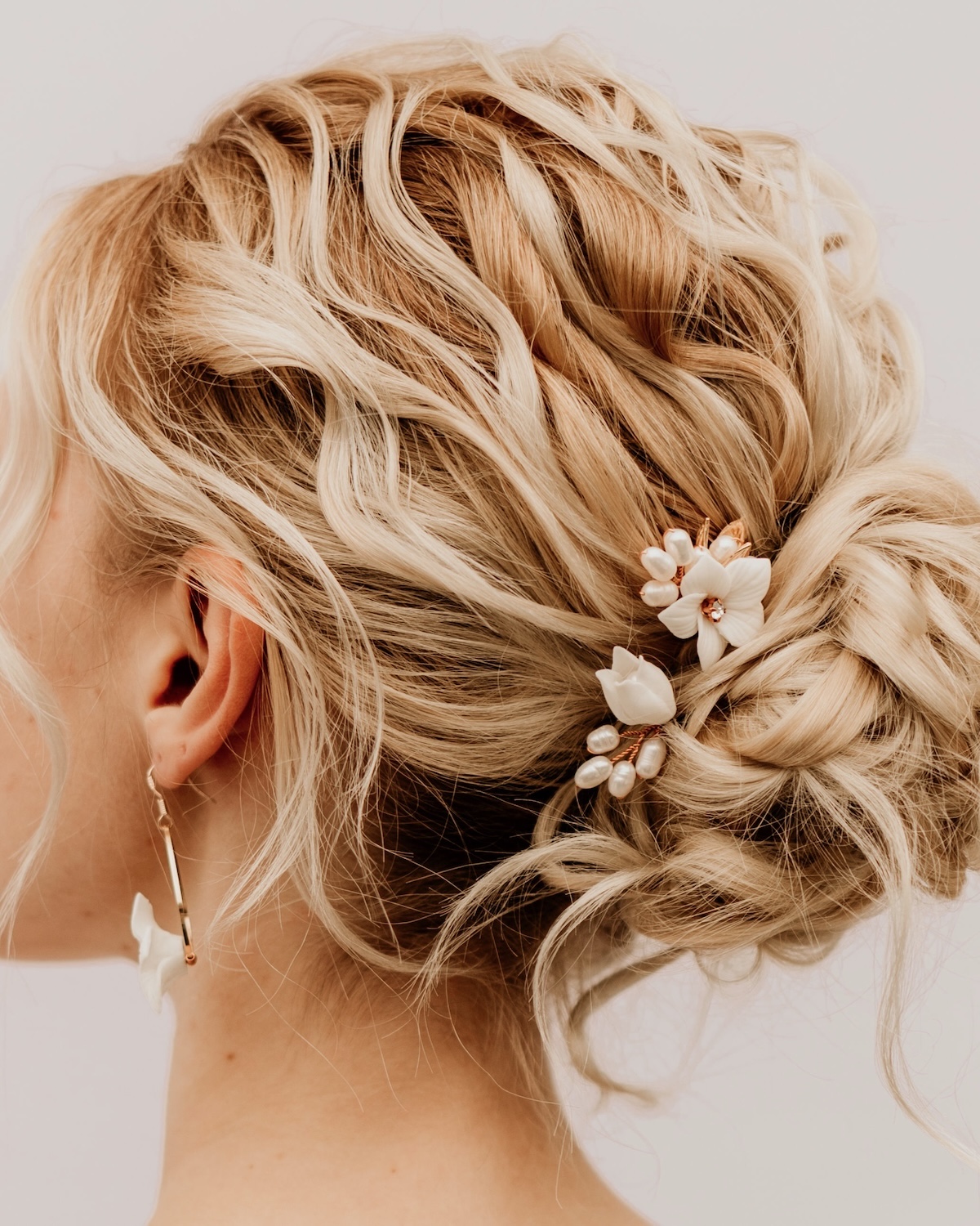 Verleihe deiner Brautfrisur einen Hauch von Romantik mit unseren Blumen Haarnadeln COCO. Jedes Stück ist kunstvoll mit zarten Keramikblumen und echten Süßwasserperlen gestaltet. Das hochwertige Design dieser Haarnadeln macht sie zu einem Must-Have für die Braut, die ihren Hochzeitstag unvergesslich gestalten möchte.