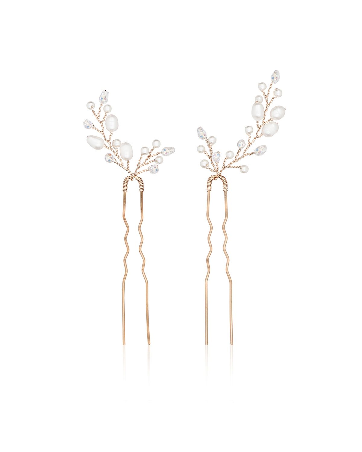 Unser zartes Perlen Haarnadel-Set ALEXIS ist mit echten Süßwasser,- Kristall- und Glasperlen verziert. Die vielseitigen Haarnadeln in Zweig-Form lassen sich mühelos in verschiedene Frisuren integrieren und bieten zahlreiche Styling-Möglichkeiten für deinen großen Tag.