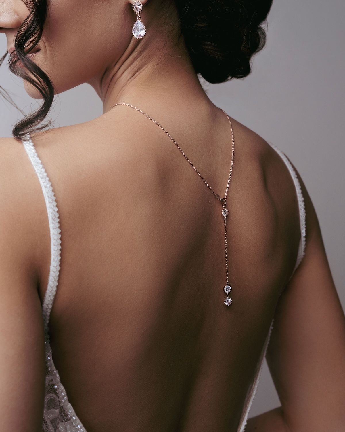 Ich bin zwar keine Braut, habe aber für einen Ball ein schönes Abendkleid mit Rückenausschnitt gekauft. Die STELLA Kette mit Rückeneinhänger war perfekt dazu. Wunderschön!